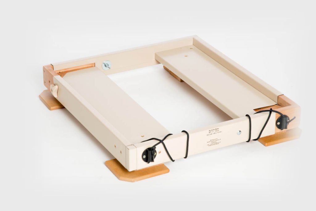 Easy to fit. Simply extend the raiser in width and length to suit the leg spacing on the base of your chair, couch or bed. Place the chair on top of the raiser.